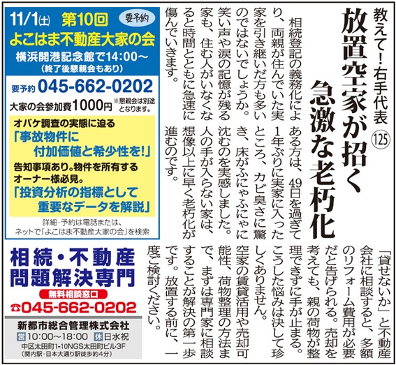 ある方は、49日を過ぎて1年ぶりに実家にはいったところ、カビ臭さに驚き、床がふにゃふにゃに沈むのを実感しました。人の手が入らない家は、想像以上に早く老朽化が進むのです。