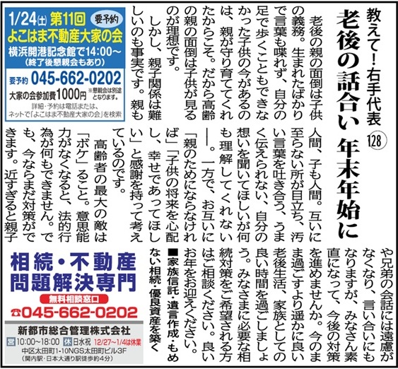 みなさまに必要な相続対策をご希望される方はご相談ください。良いお年をお迎えください。